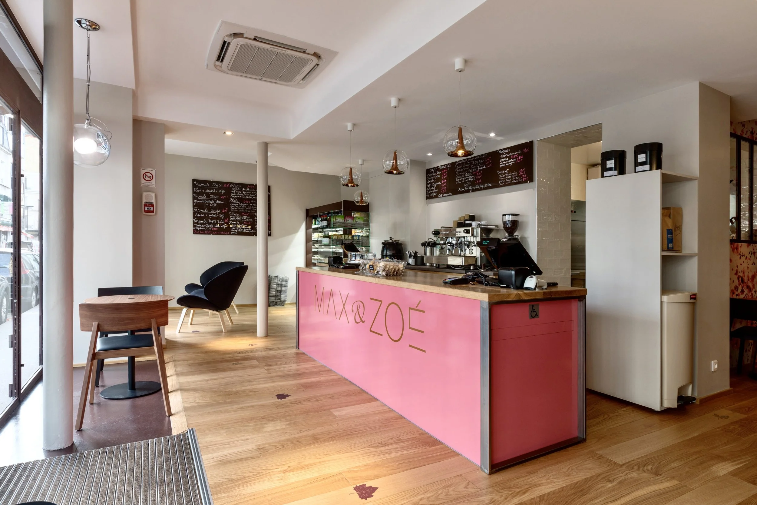 Isabelle Pechoux a imaginé, autour du rose, un design audacieux et fonctionnel qui sert de fil rouge. Les matières naturelles et chaleureuses mettent en valeur un lieu où la cuisine bien faite a envie de se montrer.